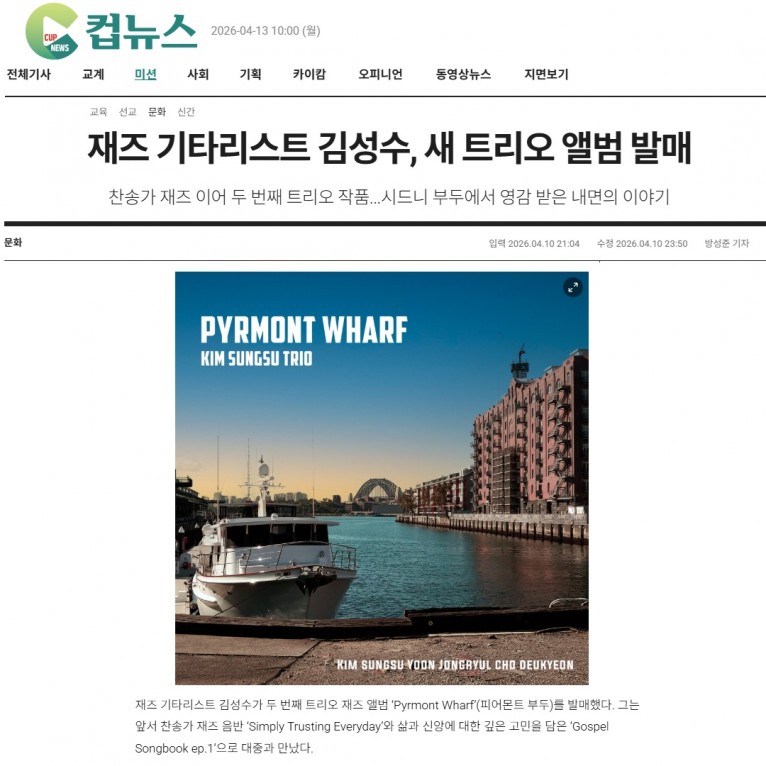 [기사] 재즈 기타리스트 김성수, 새 트리오 앨범 발매(크리스챤연합 컵뉴스)